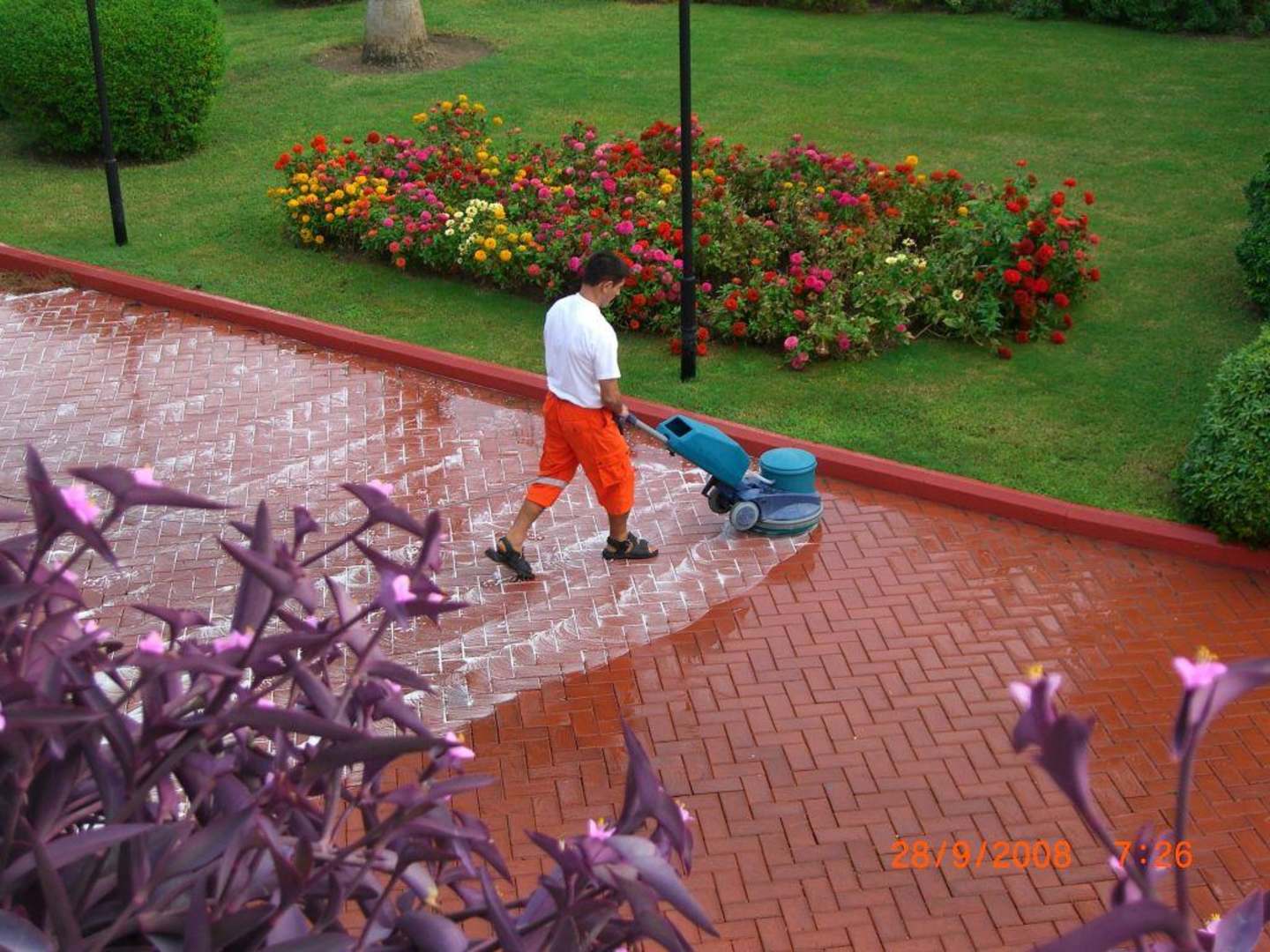Sauberkeit überallUnentwegt wird im Gelände alles gereinigt, was nur möglich ist. Kein loses Blatt ist auf den Wegen zu finden