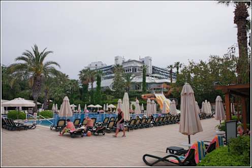 Hauptpool, im Hintergrund das Hotel zur Meerseite