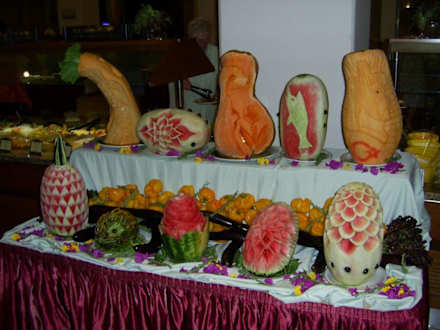 Nicht nur der Gaumen, auch das Auge ist mitFast täglich wechselnde Dekoration, fachmännisch und mit Liebe hergestellt und aufgebaut