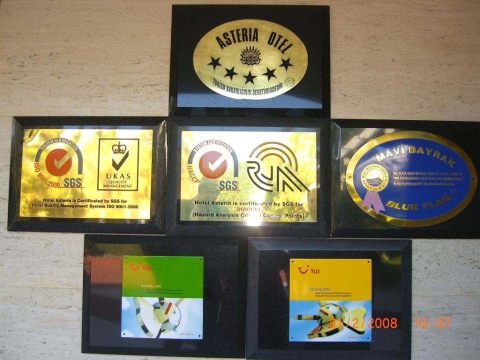 Diese Wand am Hoteleingang wird wohl bald für die kommenden Auszeichnungen nicht mehr reichen! Hier und ebenso in der Lobby befinden sich weitere Gütesiegel und so sieht man eindeutig, welch hochwertiges Hotel man gebucht hat.