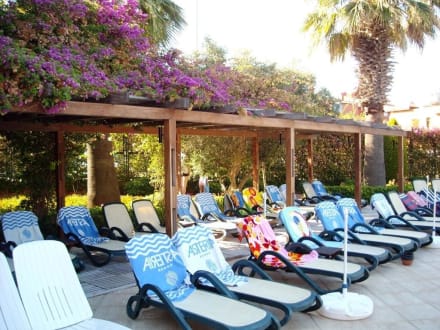 fast alle Liegen mit Strandhandtüchern belegt und Niemand in Sicht :-(