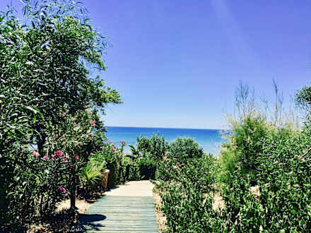 Weg durch Gartenanlage zum Strand