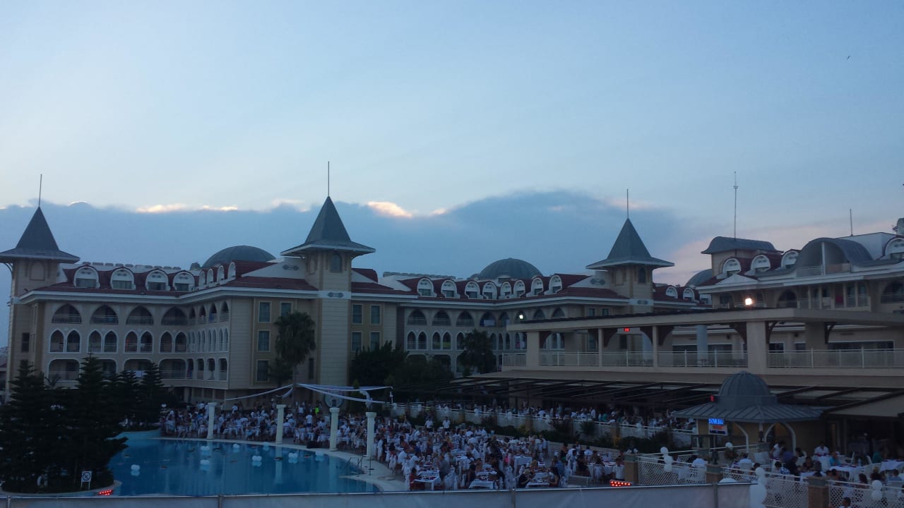 Pool mit Tischen und Gästen bei der White Night