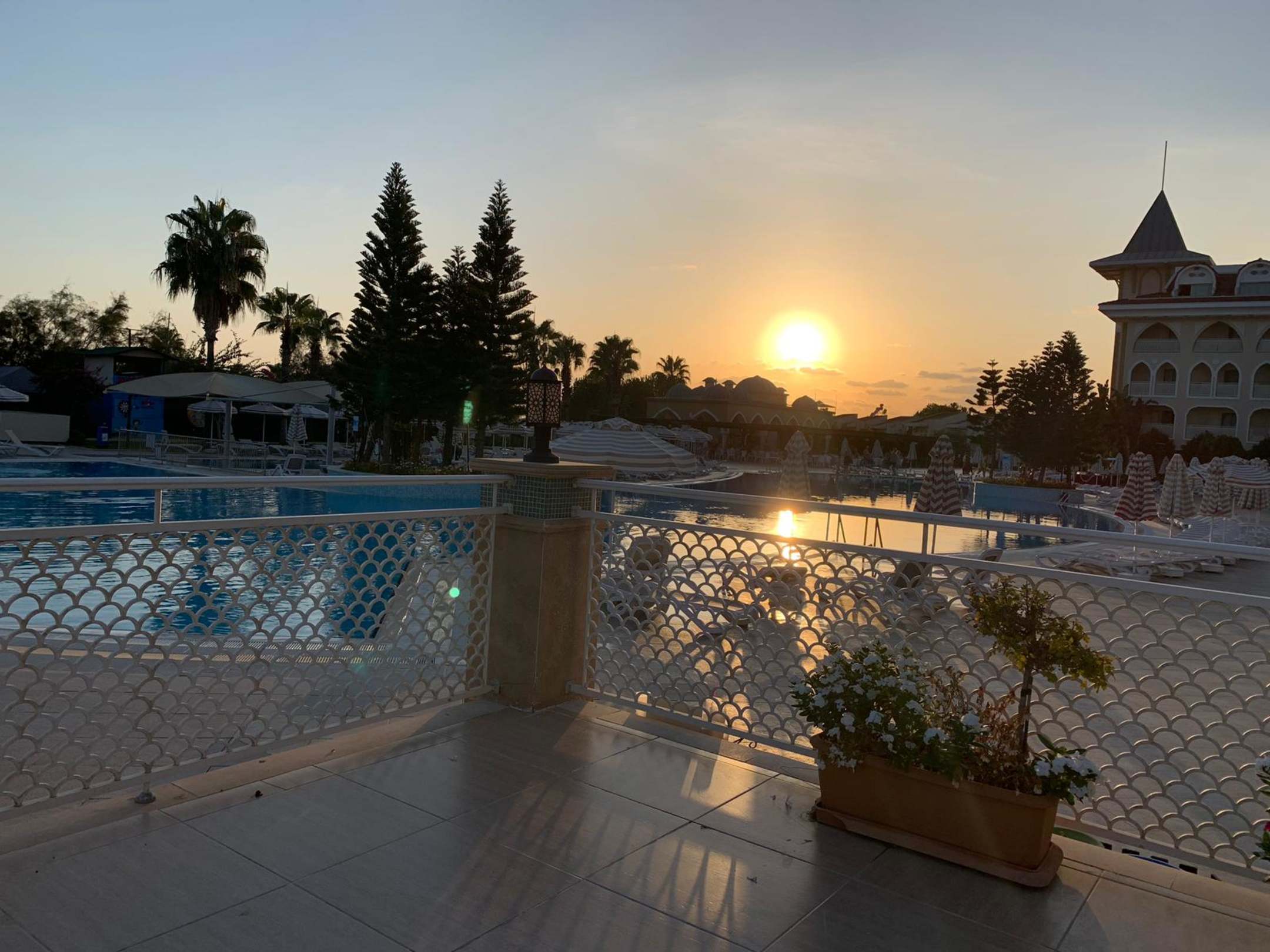 Sonnenuntergang mit Ausblick vom Pool aus