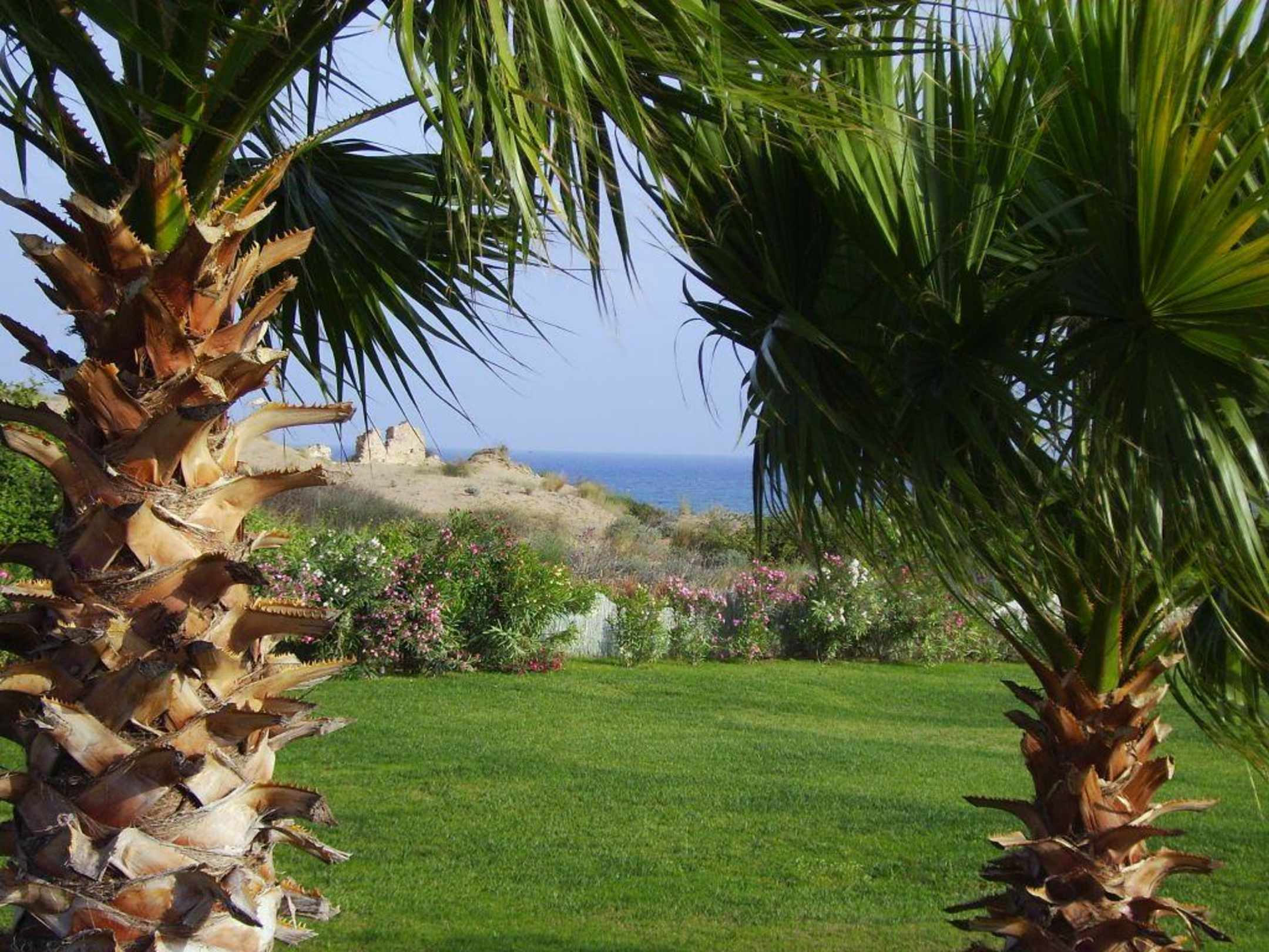 Blick auf die Ruinen auf dem Weg zum Strand
