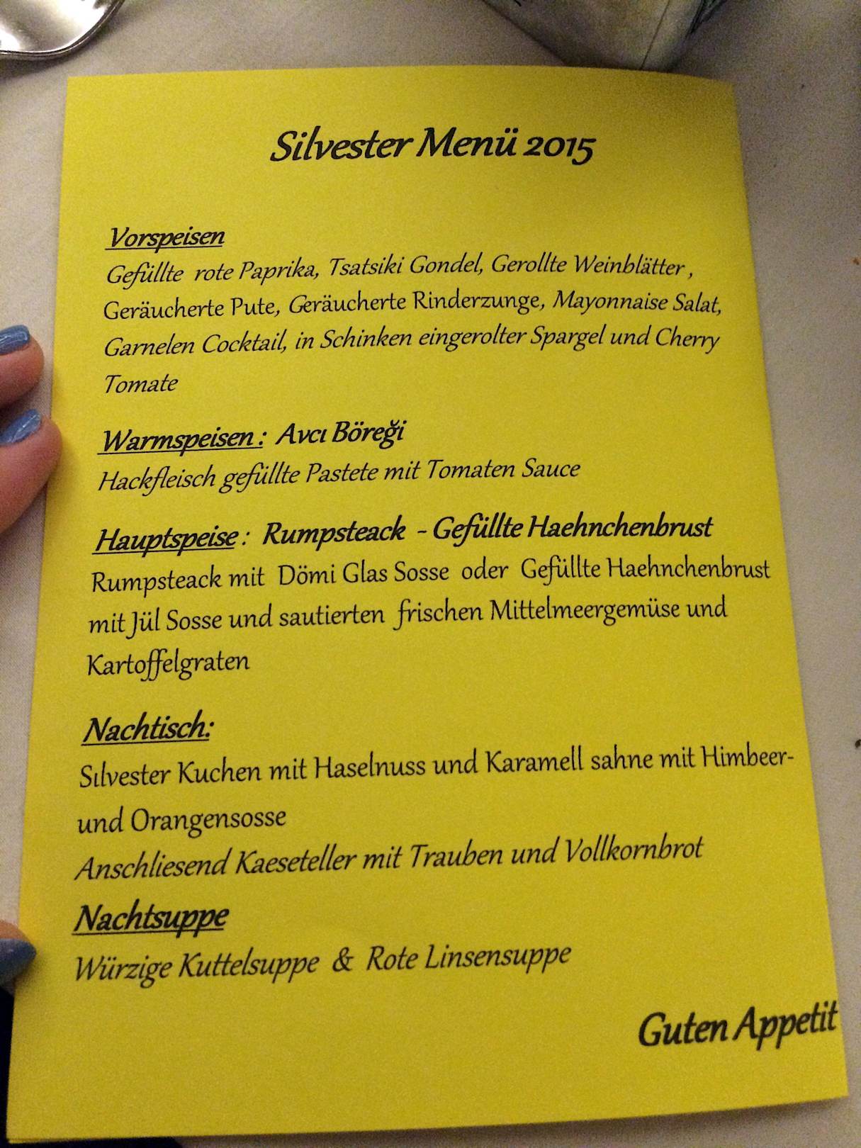 Menükarte Silvester