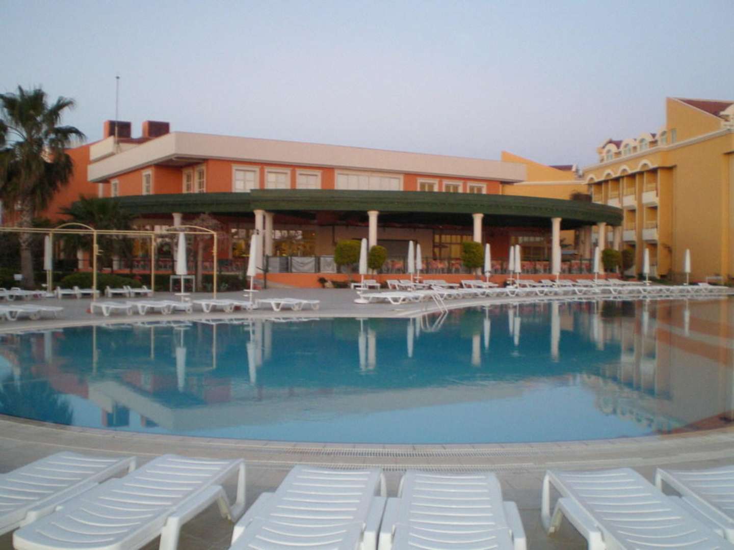 Blick vom Pool auf das Restaurant