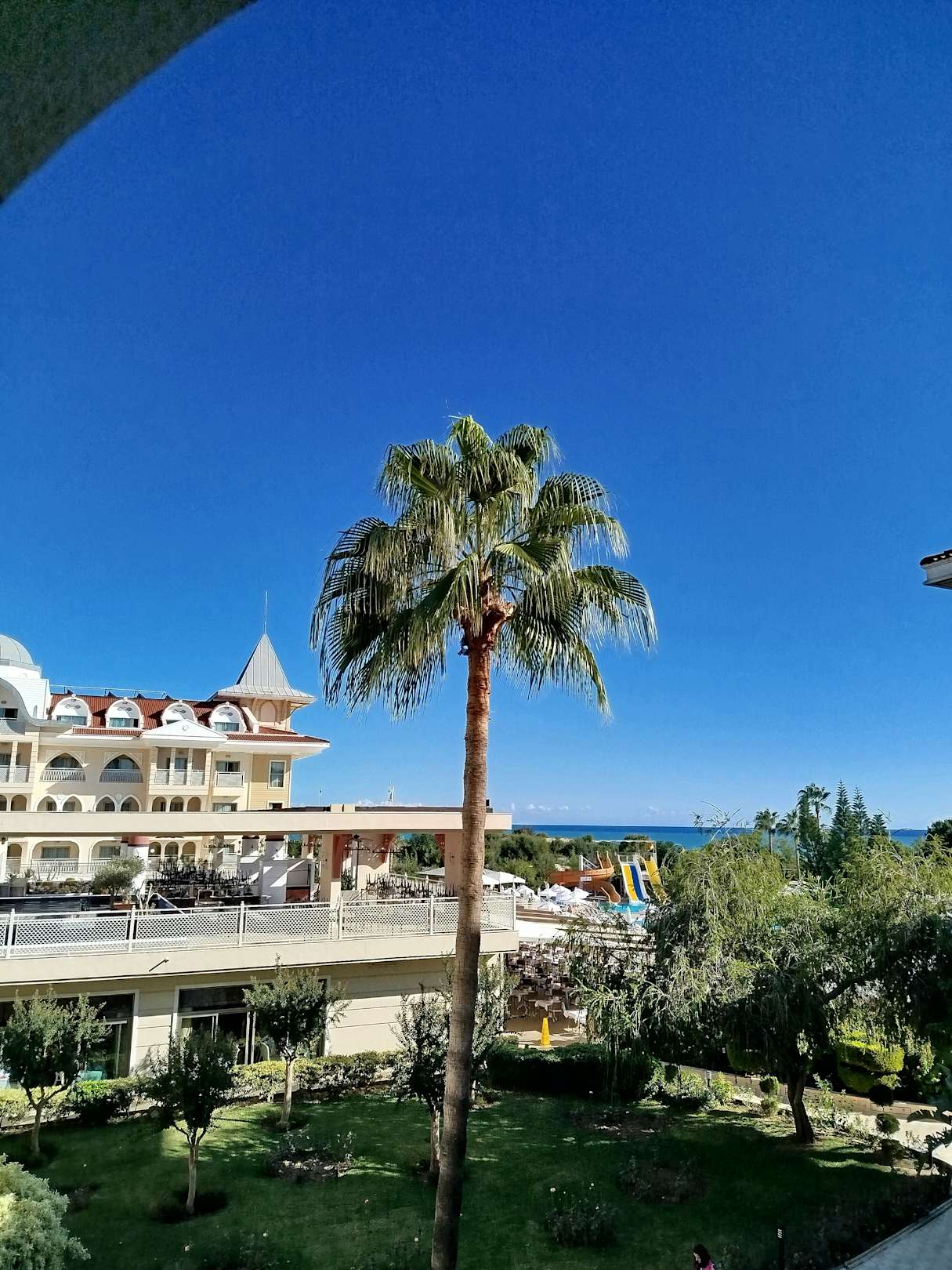 Blick vom Zimmer auf die Anlage.