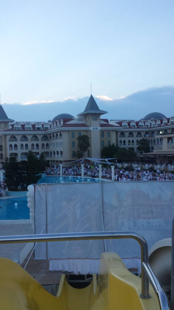 Pool mit Tischen und Gästen bei der White Night