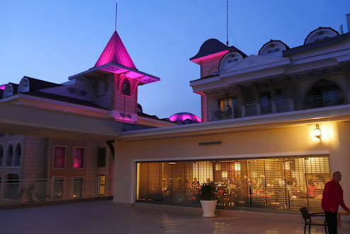 AußenansichtBlick auf einen Ausschnitt vom Hauptrestaurant mit einem der "Zimmerhäuser" vom Sidestar Resort links daneben