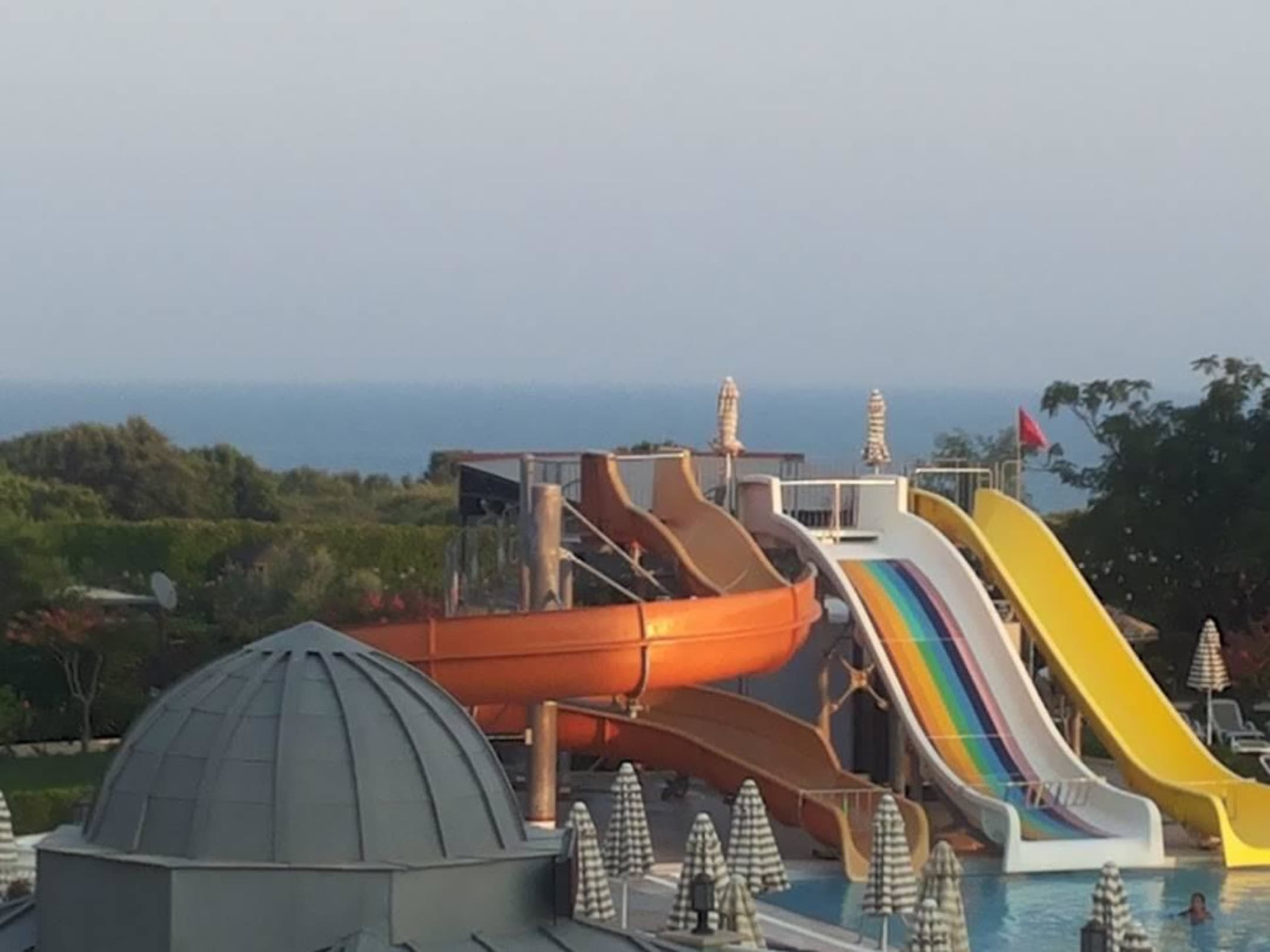 Ausblick auf die Rutschen und das Meer