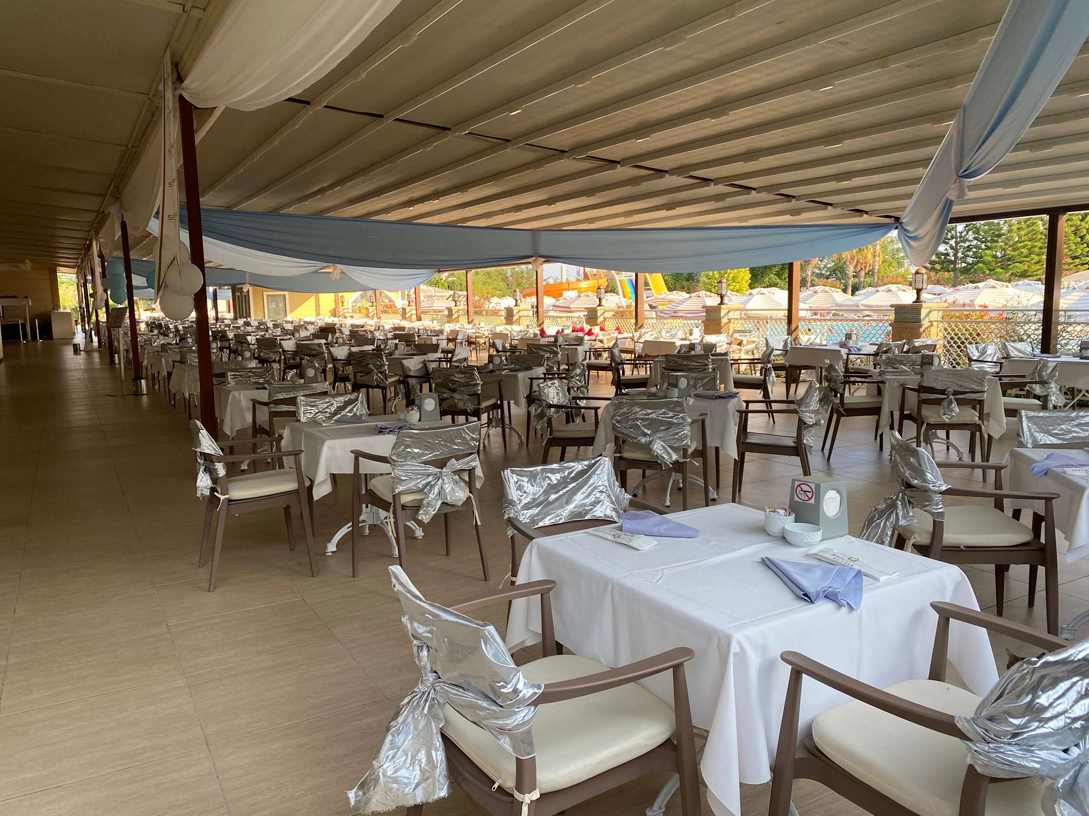 Tischdeko für die weiße Nacht auf der Terrasse