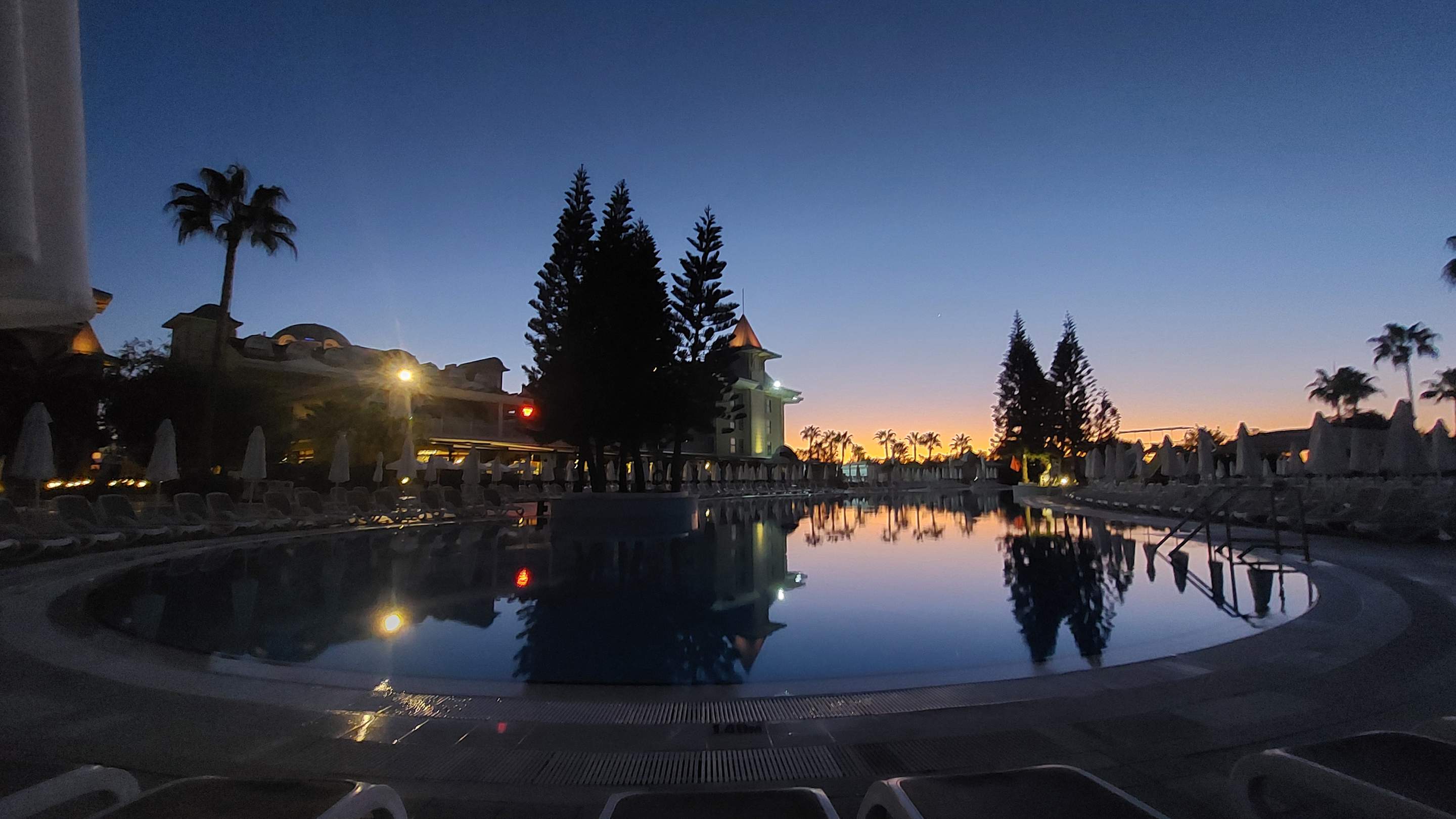 Wenn man ganz früh wach ist sieht´s am Pool so aus