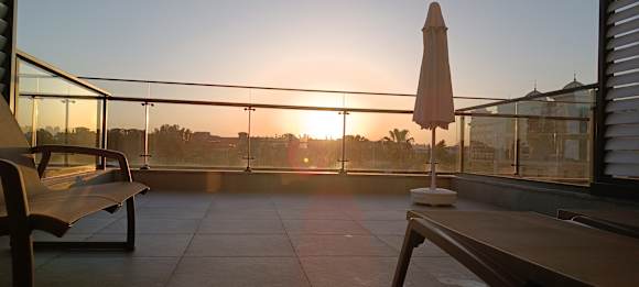 Richtig schöne große Terrasse mit tollen Sonnenuntergang.