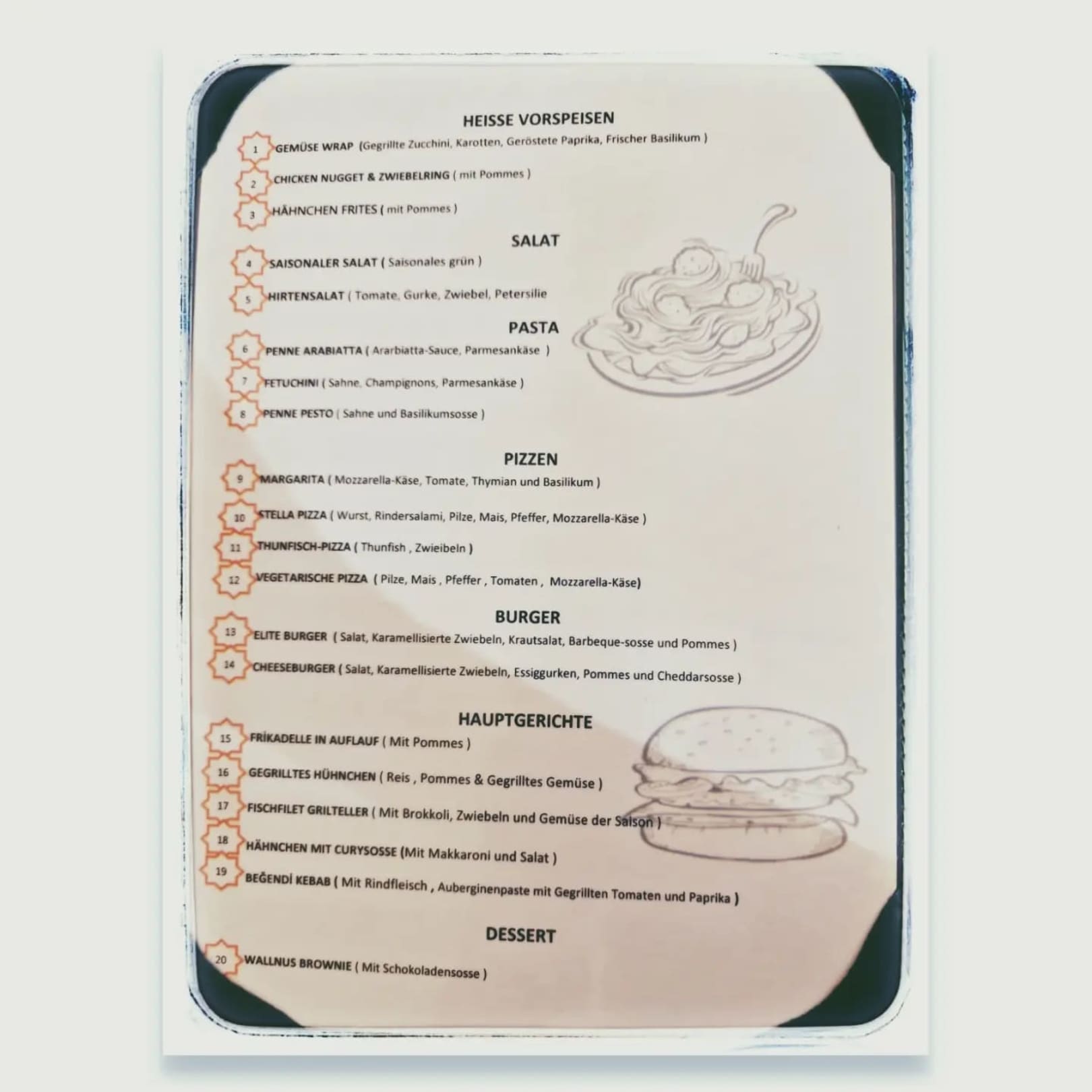 Menü Karte Strandbar.