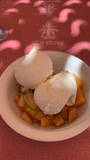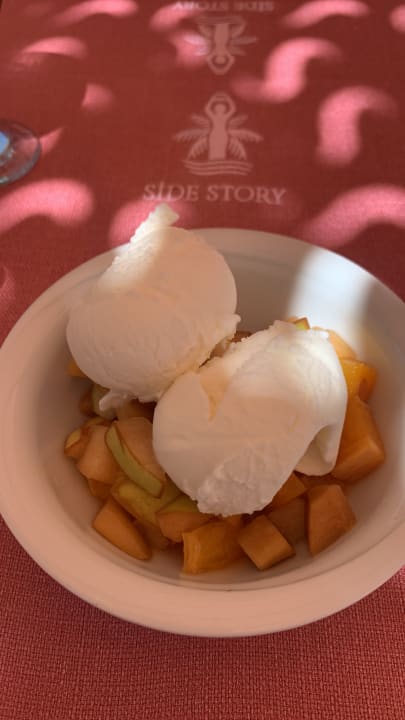 Mein Lieblings Dessert am Strand Obstsalat mit Eis , sehr lecker und erfrischend