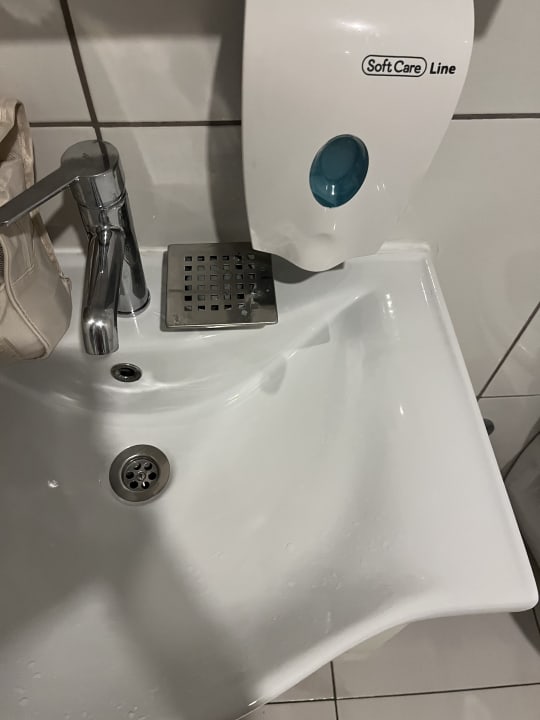 ZimmerDie Abdeckung von der Dusche wurde nach besichtigten des Problems einfach auf dem Waschbecken liegen gelassen.
