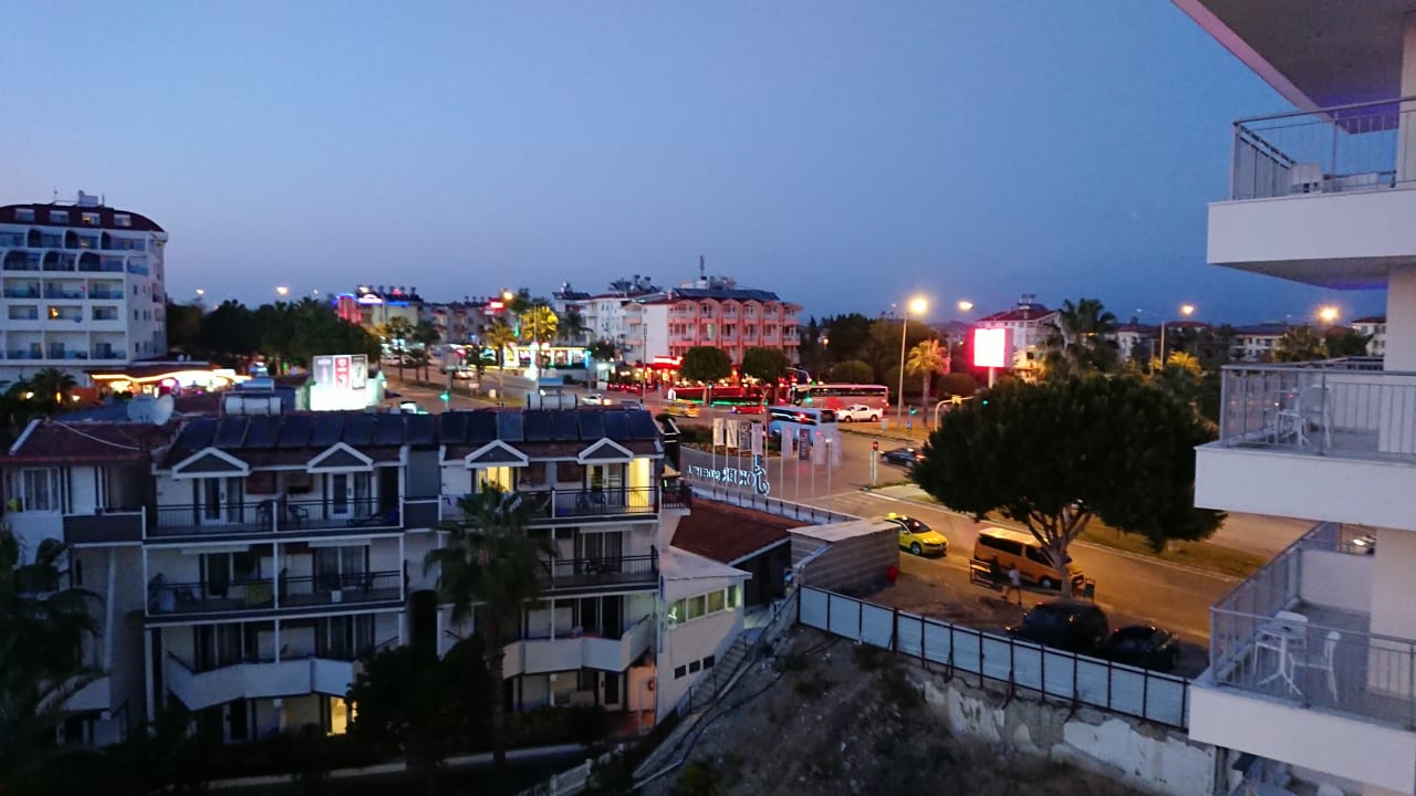 AusblickAusblick auf die Haupstrasse, die aber keine Lärmbelästigung war. Nach links war der gebuchte seitliche Meerblick.