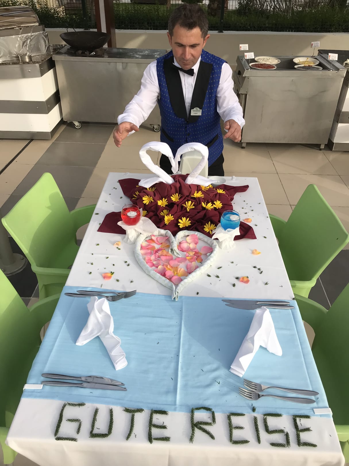 Aydin bereitet ein Tisch für Gäste , die am nächste Stunden wegreisen