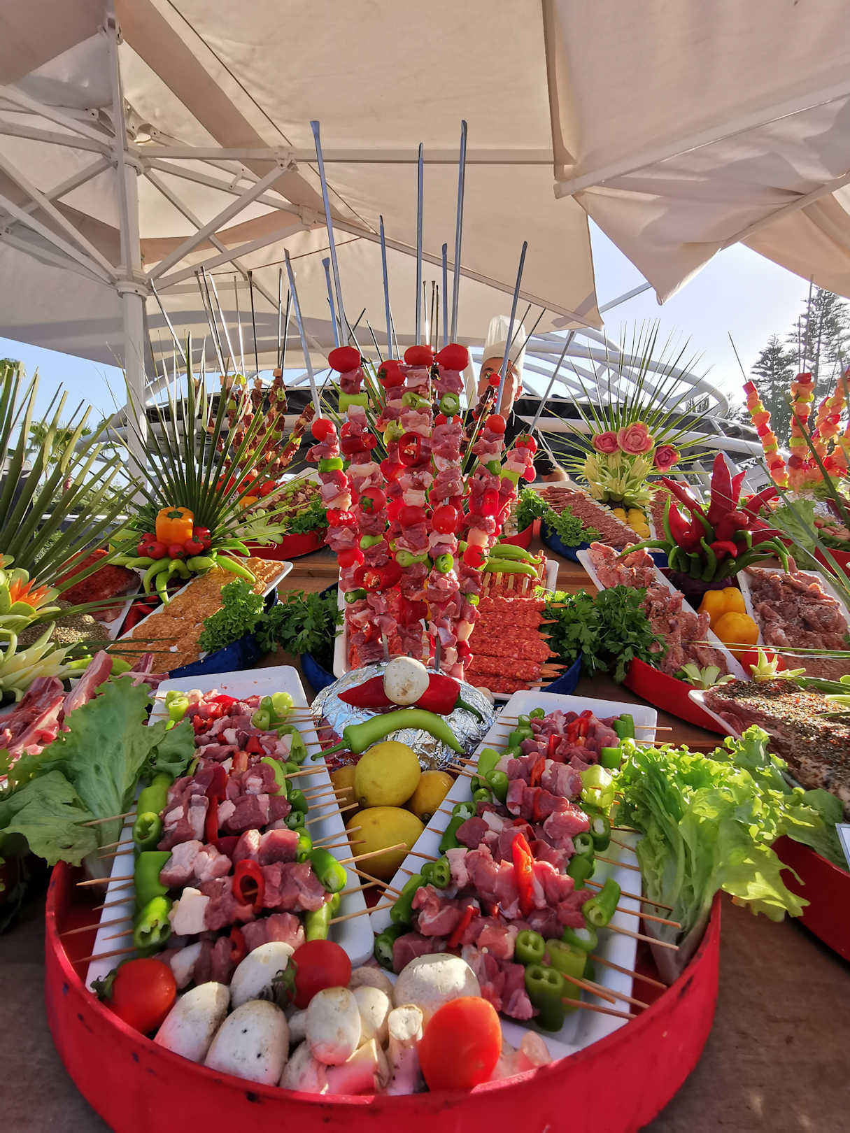 Lamm-, Kalb- und Puten Fleisch in Scheiben und auf Spieß zum grillen . 27.04.2022