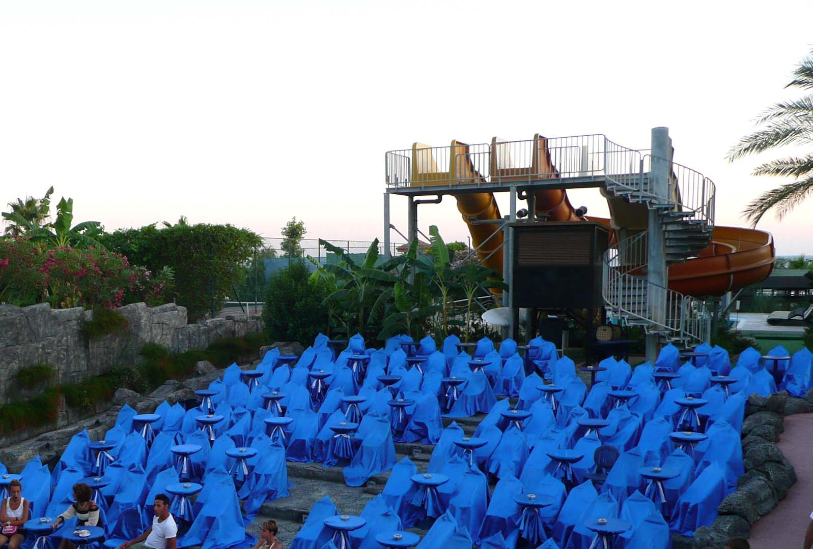 Wasserrutschen hinter der Animationsbühne