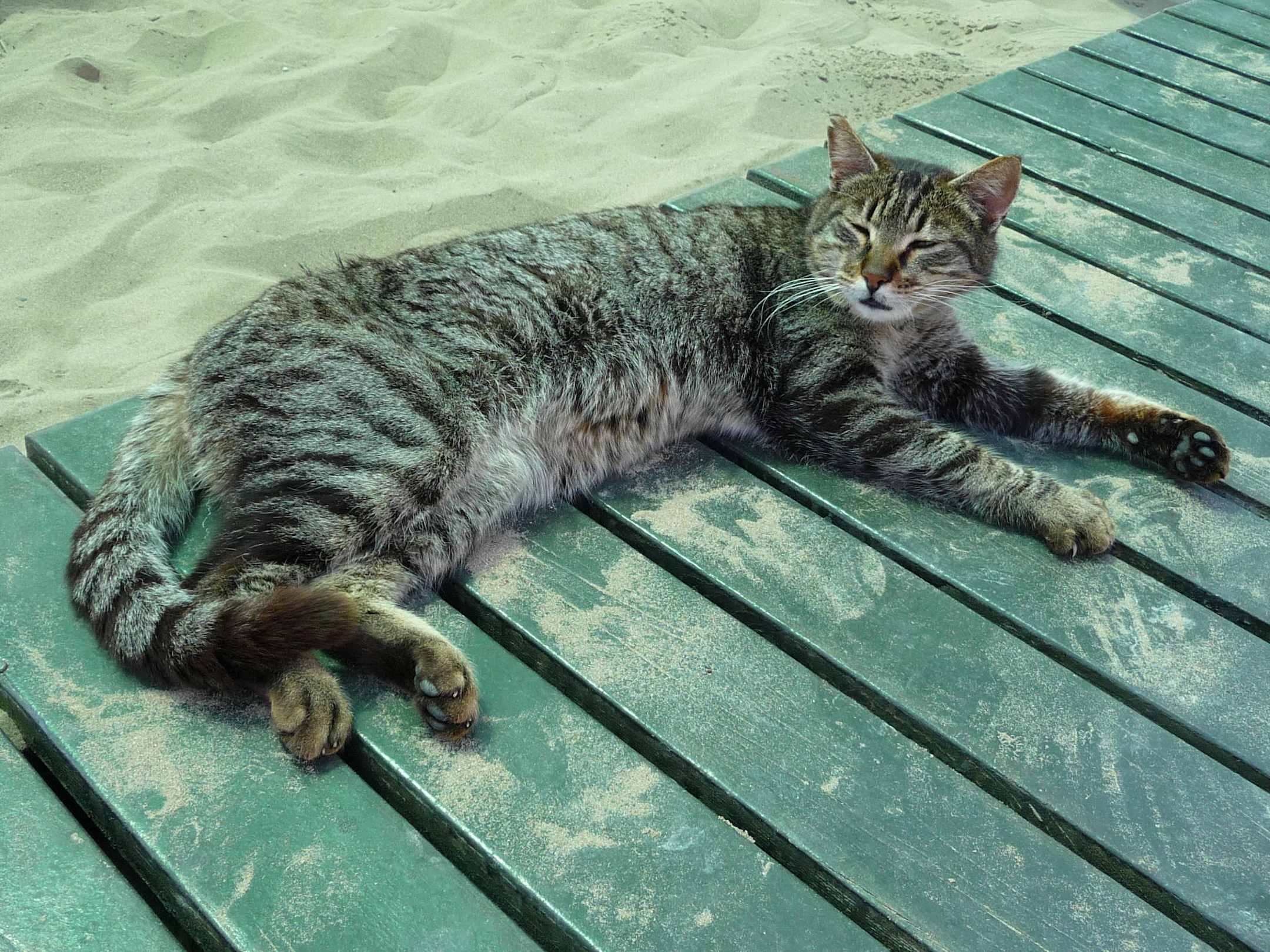 Er begrüßt die Gäste, die zum Strand gehen
