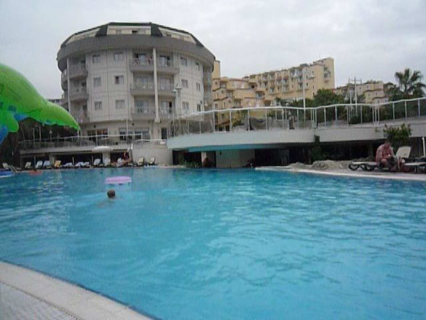 Blick vom Pool auf das Hotel