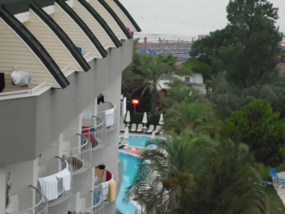 Blick vom Balkon auf den Pool