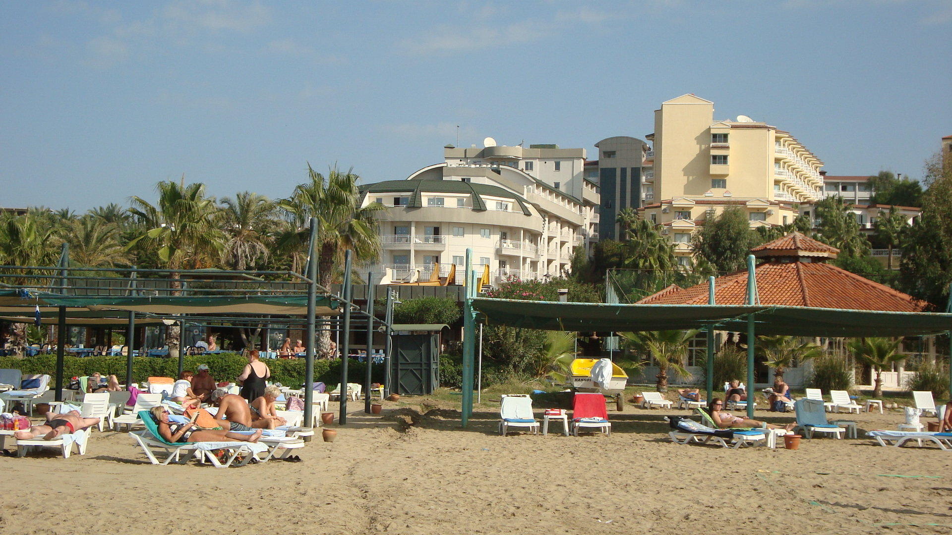 Blick vom Strand aufs Hotel