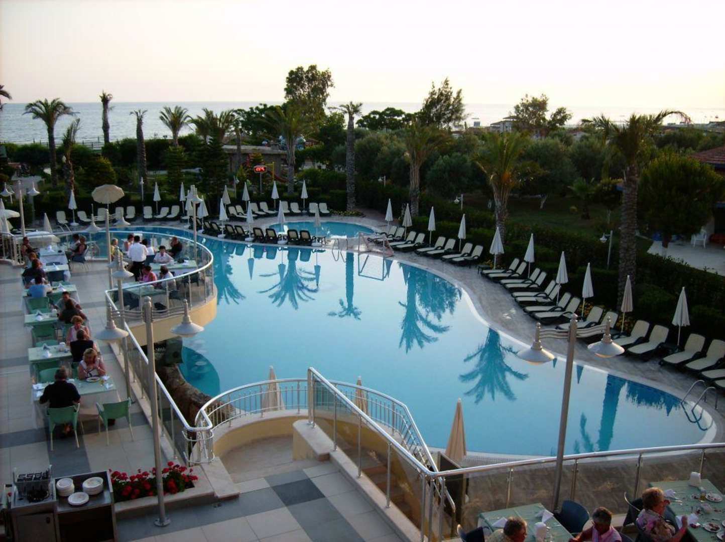 Blick vom Balkon des Zimmers 114 auf den Pool