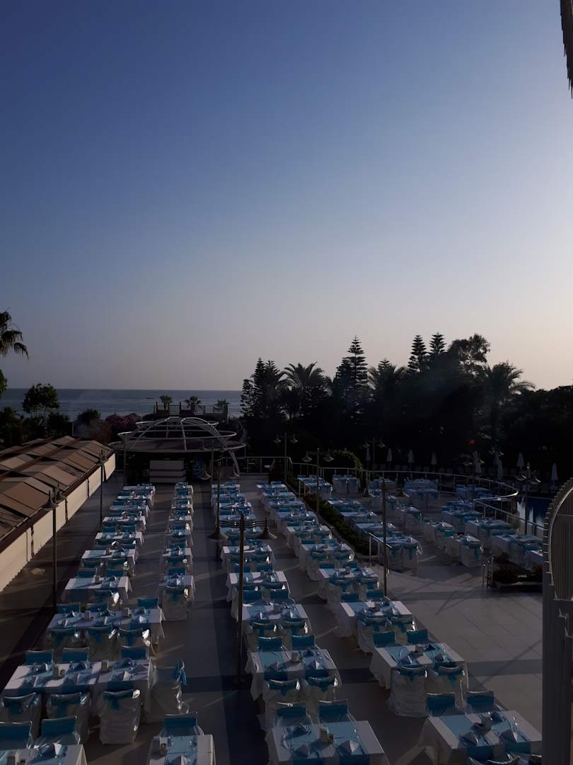 AußenansichtAusblick aus unserem Zimmer. Heute Abend ist Fischabend. Super viele Fischspezialitäten.