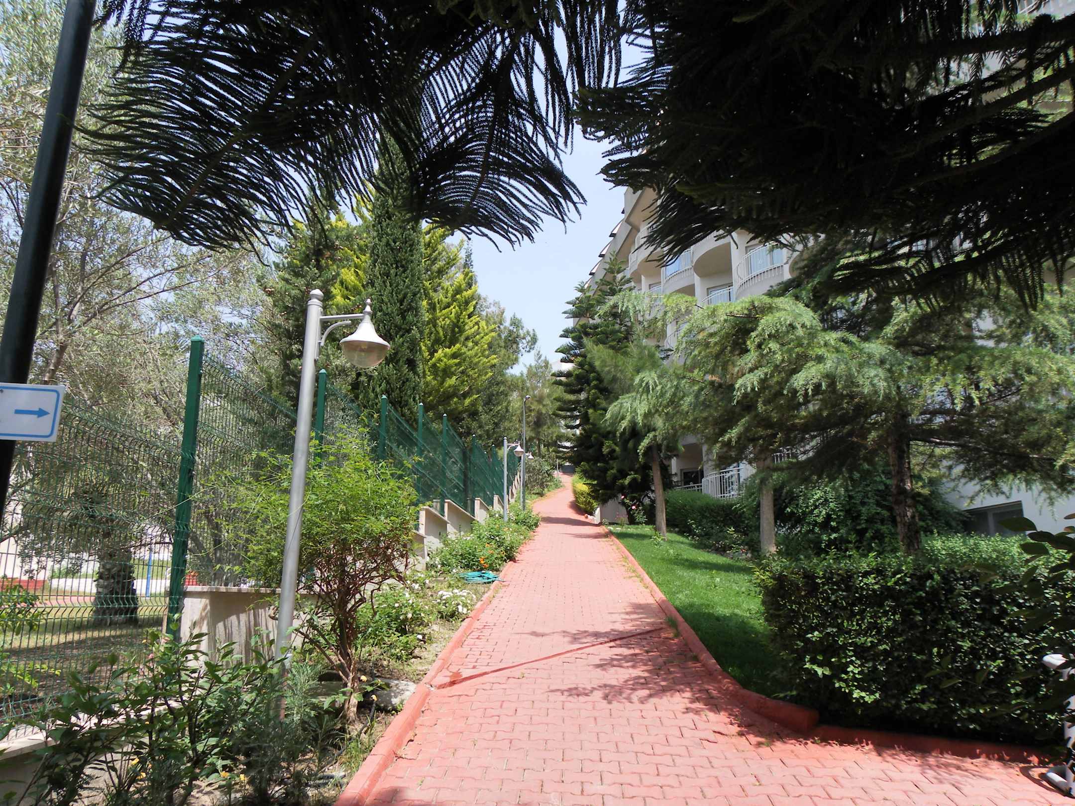 Weg entlang der Poolanlage zum Hotel