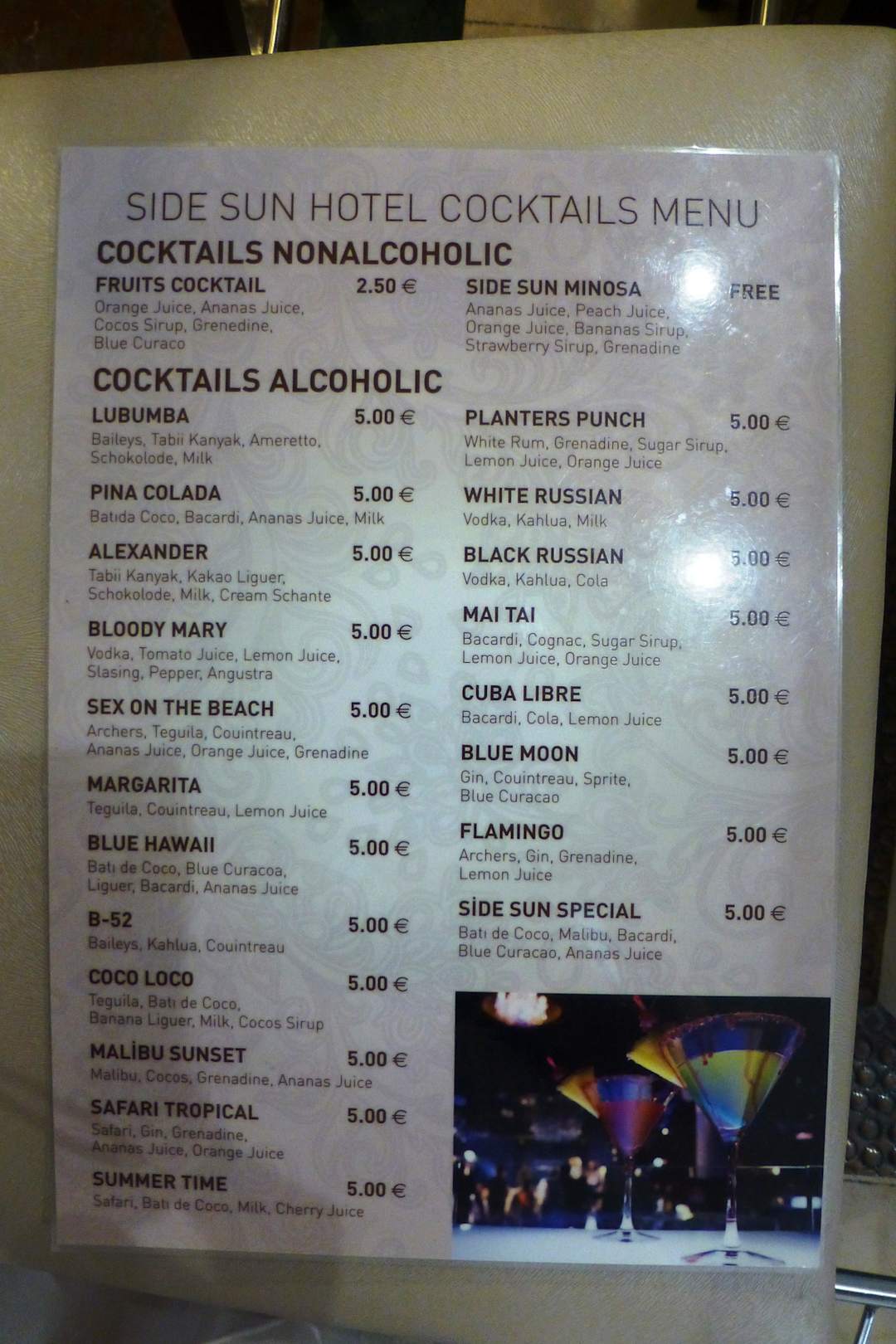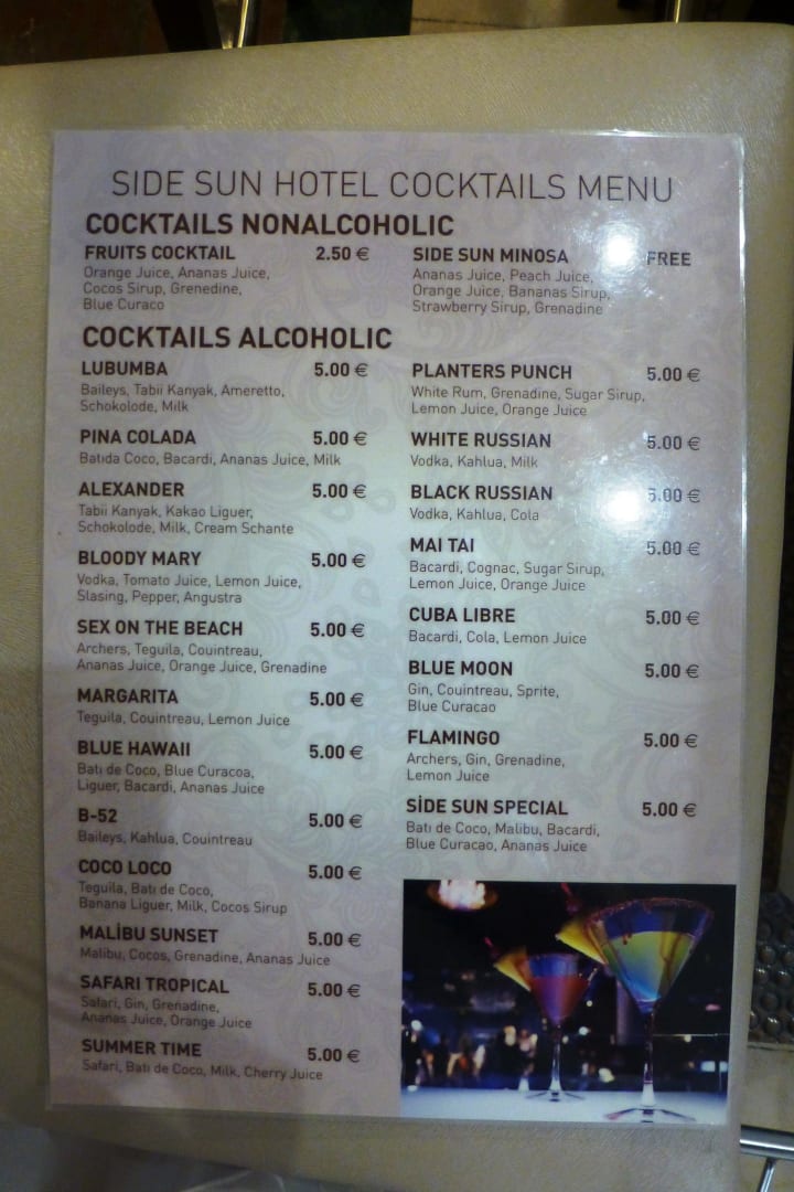 Cocktailpreise an der Lobbybar