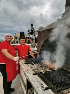 Küchenmitarbeiter beim Spieß Grillen