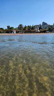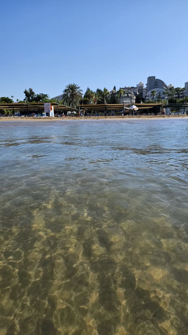 Blick vom Meer zum Hotel