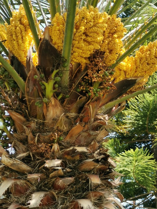 Blühende Datteln Palme