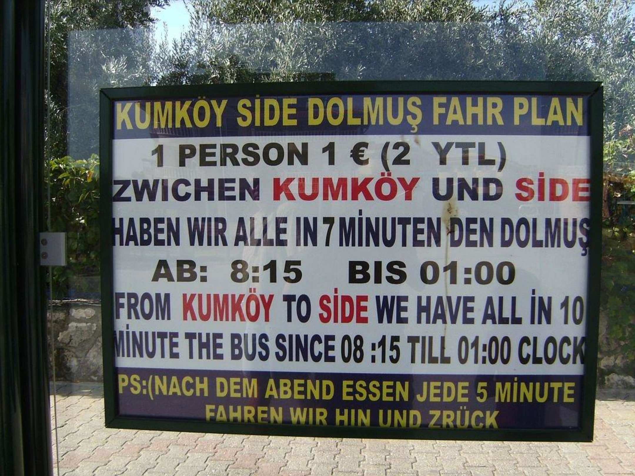 "Fahrplan" an der Bushaltestelle nach Side