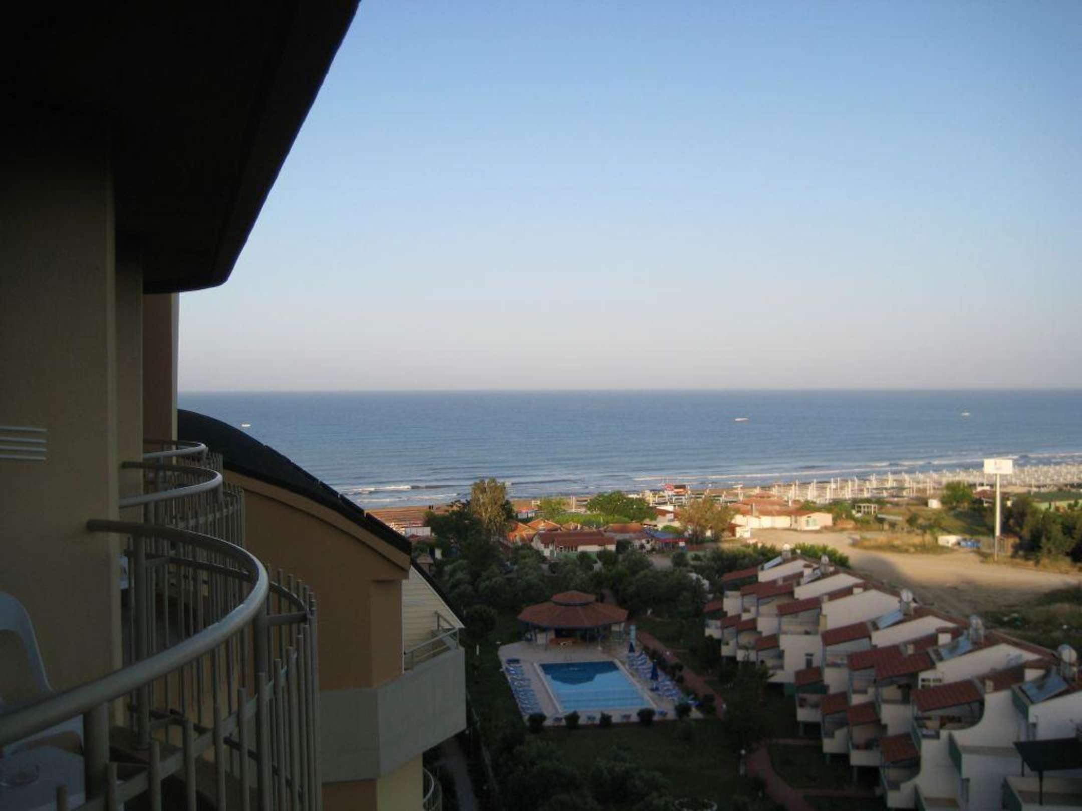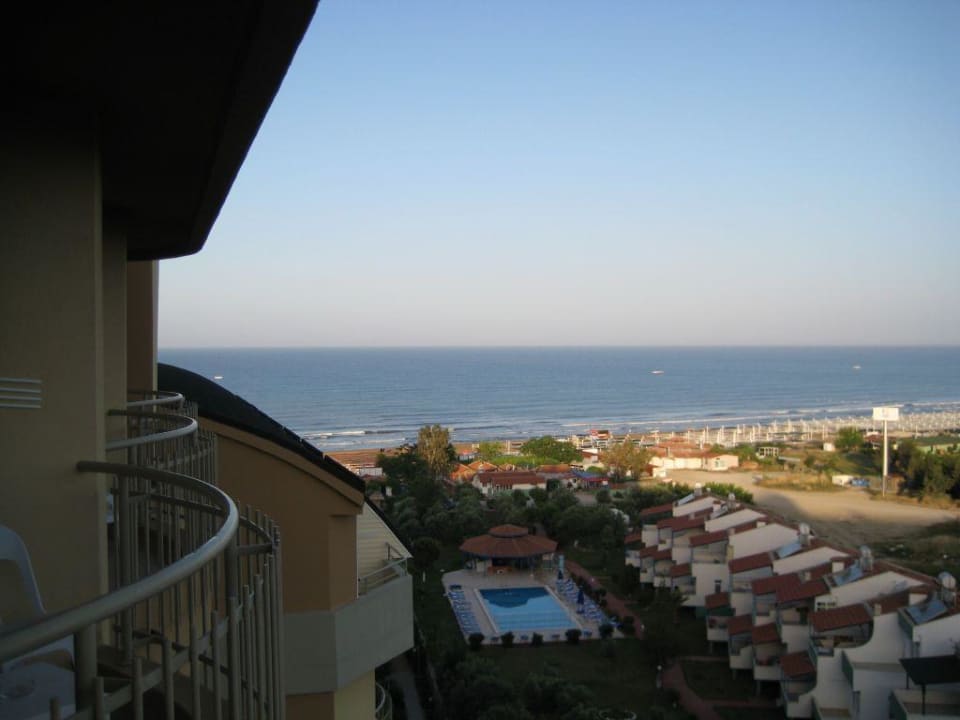 Hier die Aussicht vom 7. Stock auf den Strand