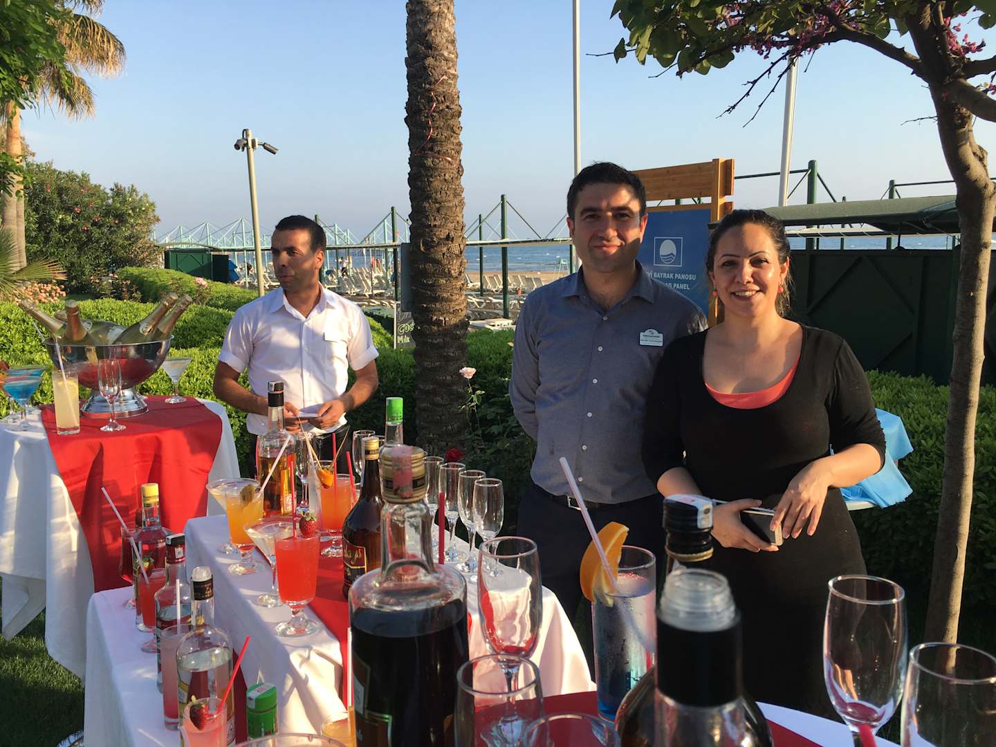 Stammgast -Abend .Empfang von Frau Binai , der Saalschef und ein Kellner