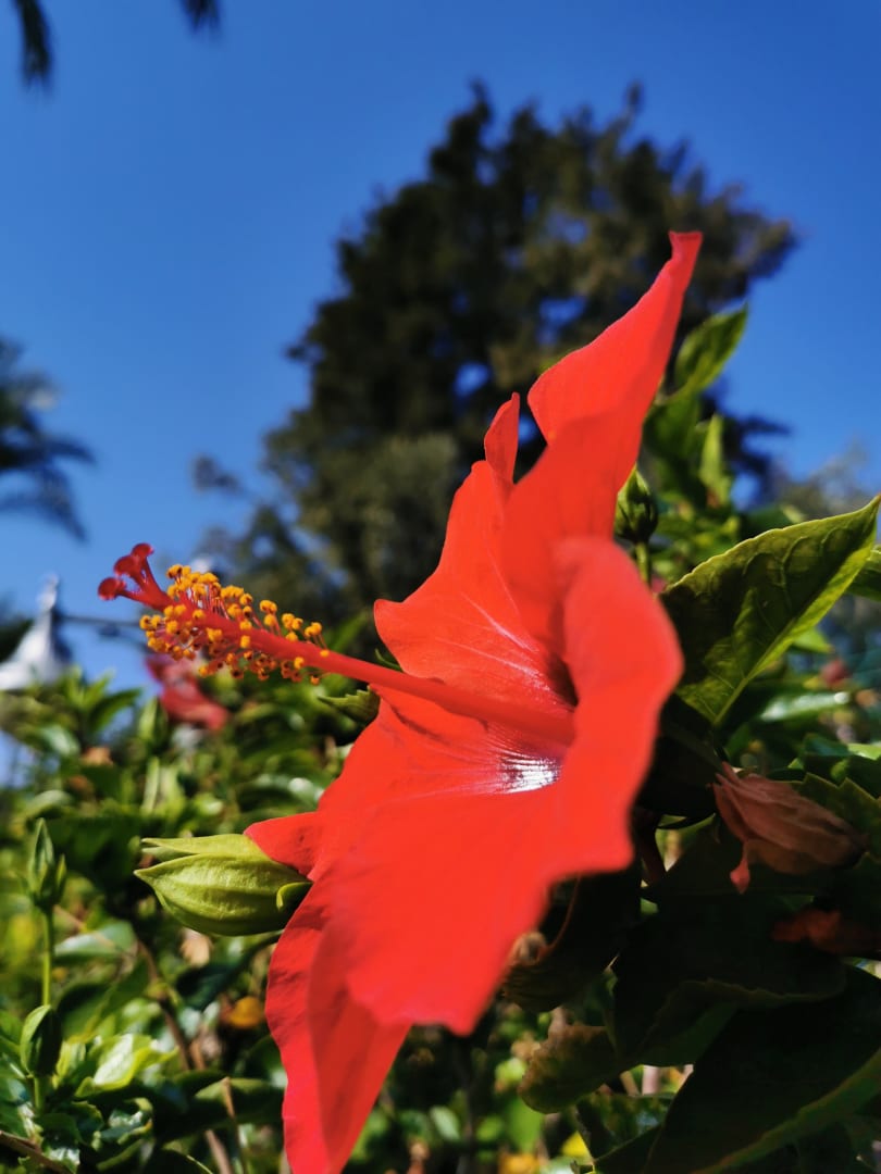 Der Weg Richtung Strand umrandet mit Palmen und Hibiskus