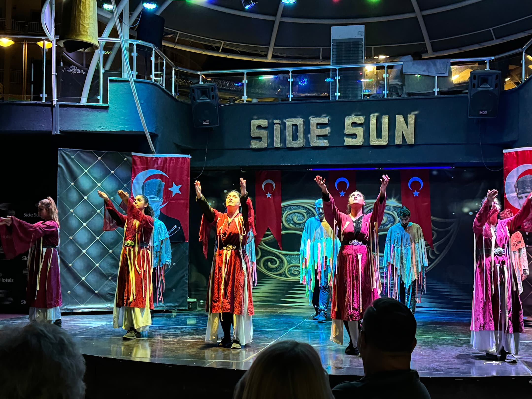 Türkische Volkstanzgruppe auf die Bühne von Side Sun Hotel