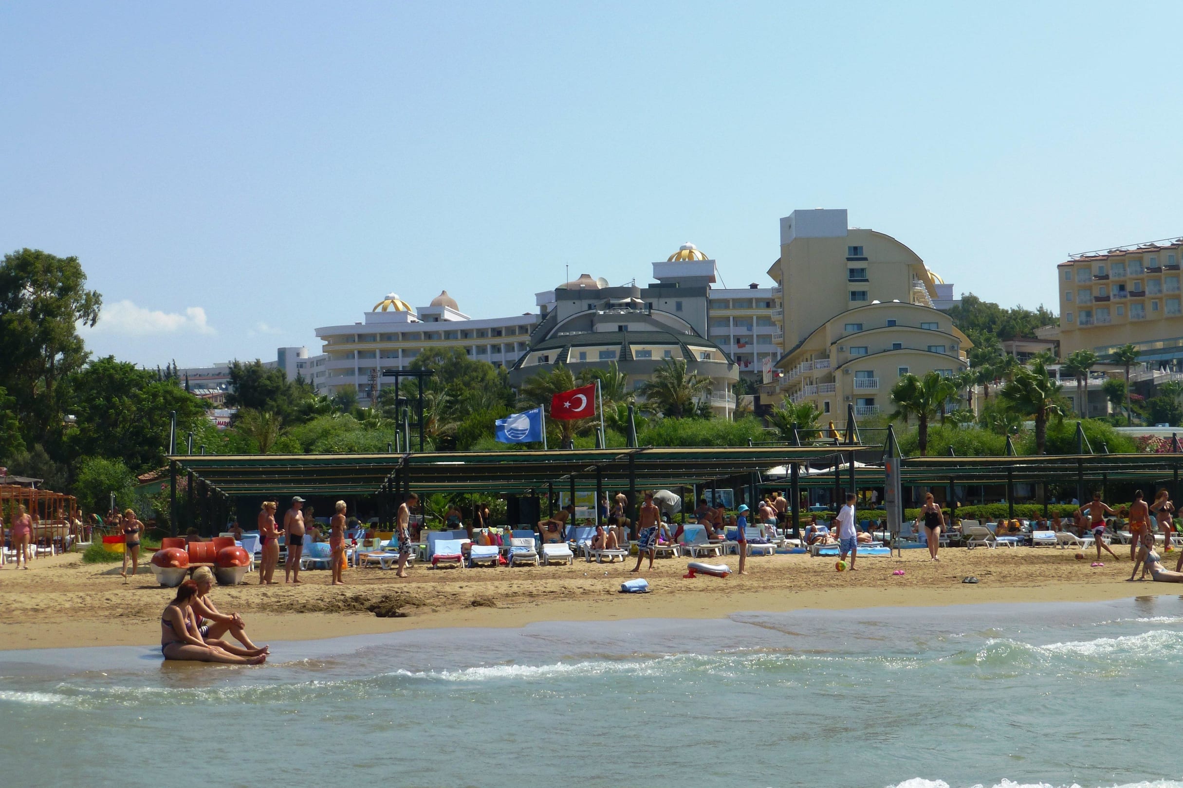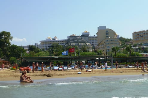 Hotel und Strandabschnitt vom Wasser aus