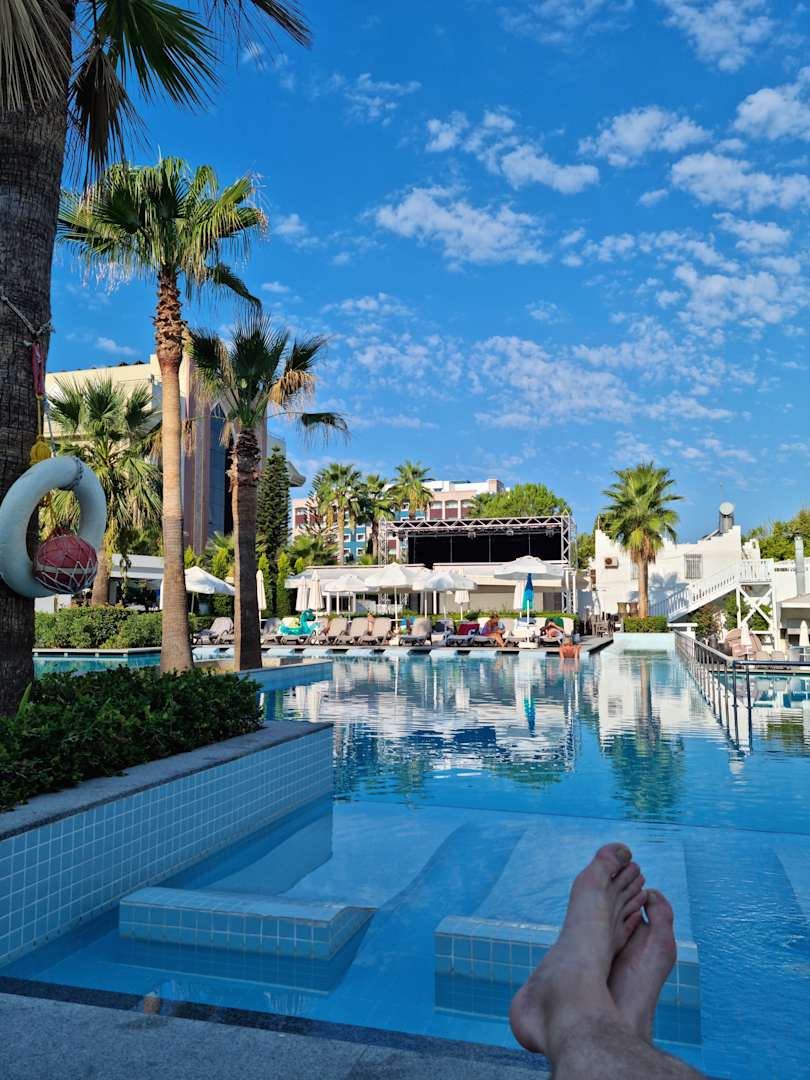 PoolSehr schöner Pool nicht überragend groß aber vollkommen ausreichen und die Liegen im Pool dienen zum relaxen im kühlen nass ein .