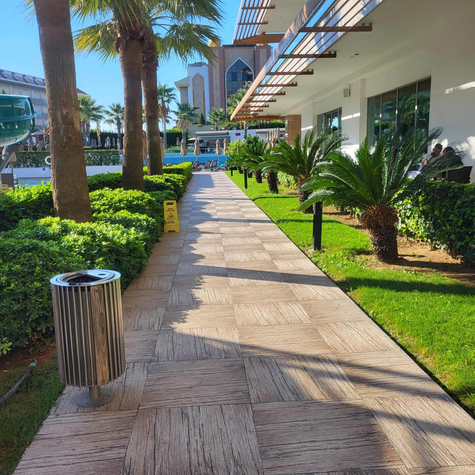 Der Außengang am Hotel zu den Pool´s