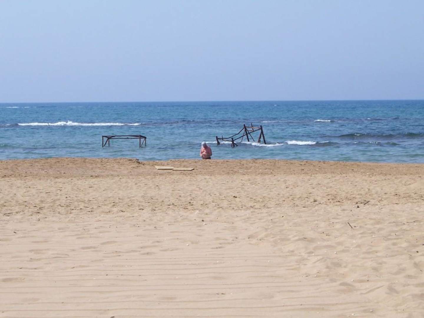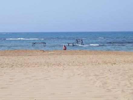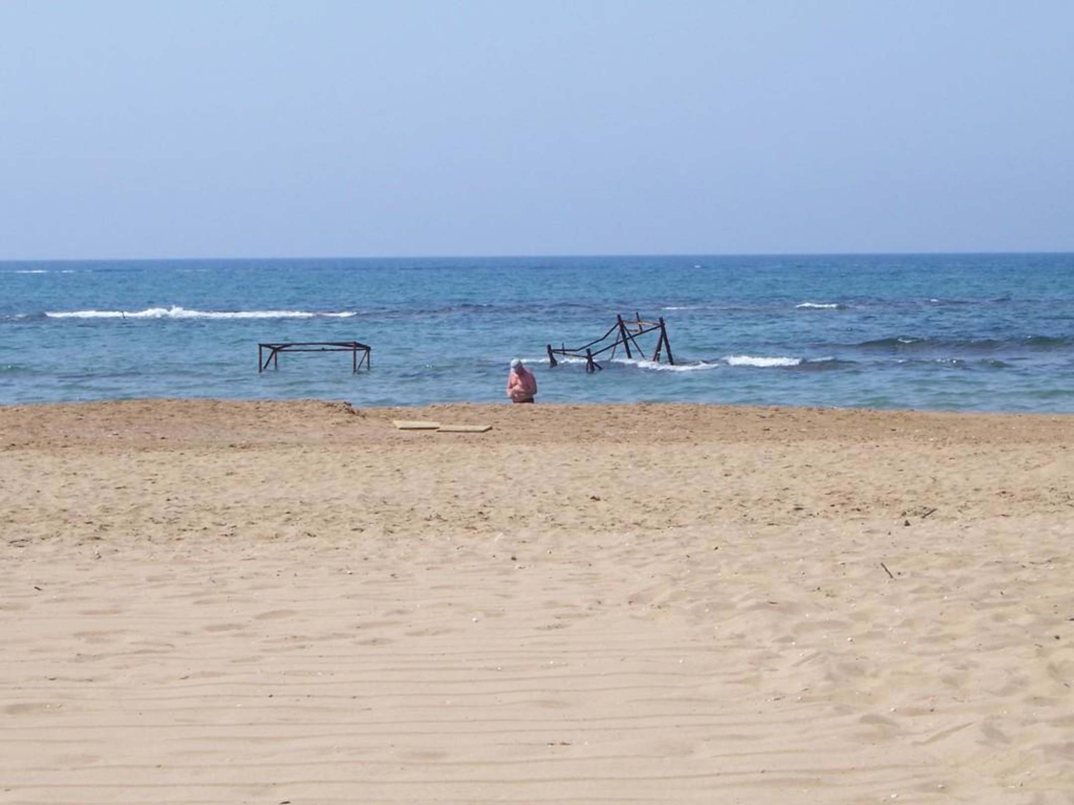 EisengestängeDirekt am Hoteleigenen Strandabschnitt stehen Eisenstangen mit verankerungen im Boden im Wasser.