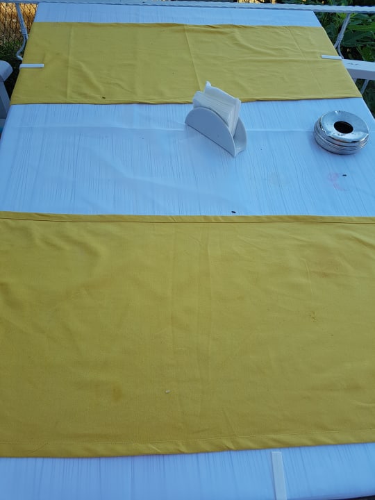 RestaurantDie Tische würden nach dem Abendessen nicht geeinigt. Das Essen vom Vorabend war morgens noch gut zu erkennen