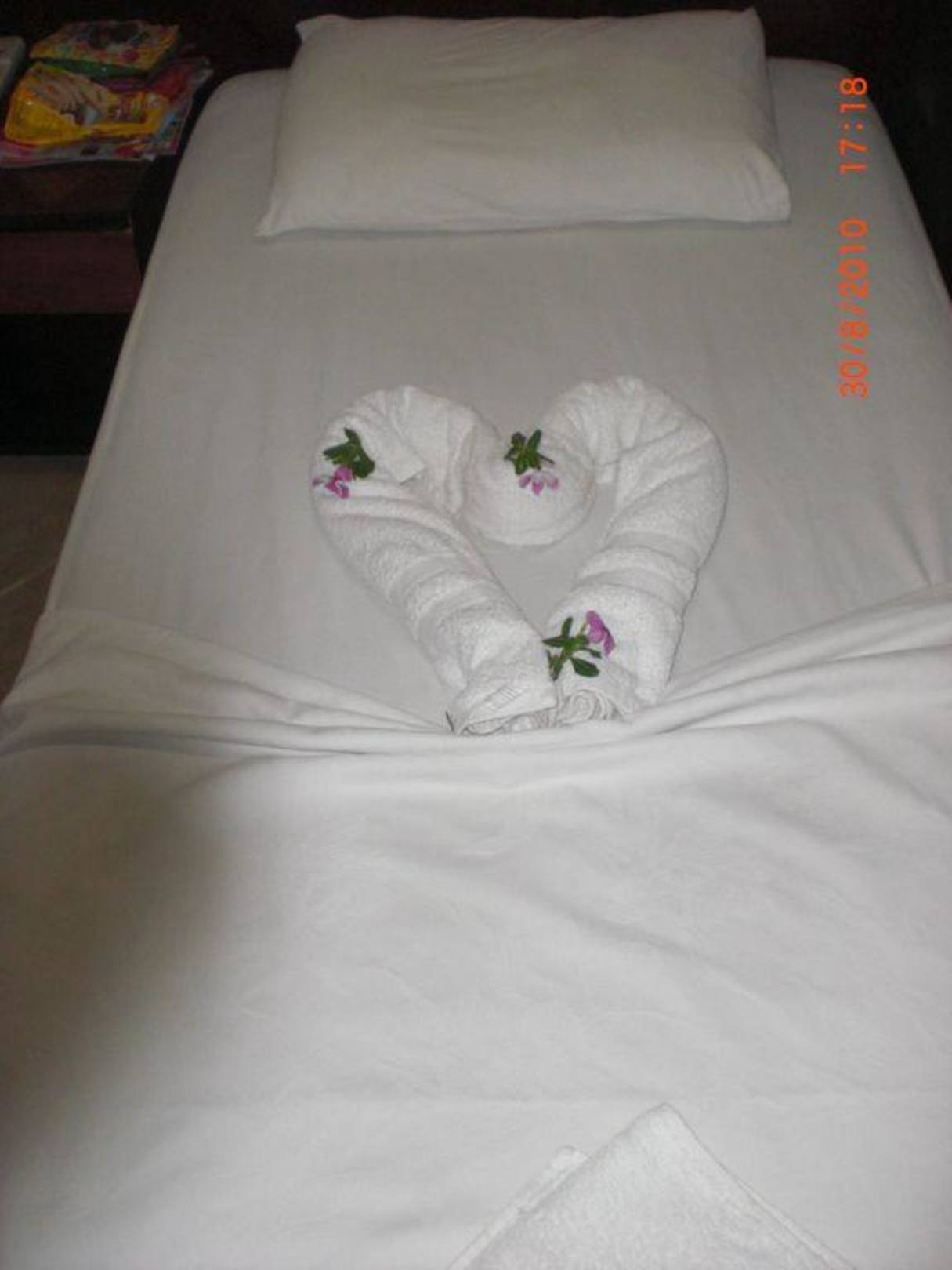 Das Bett schön dekoriert vom Zimmermädchen