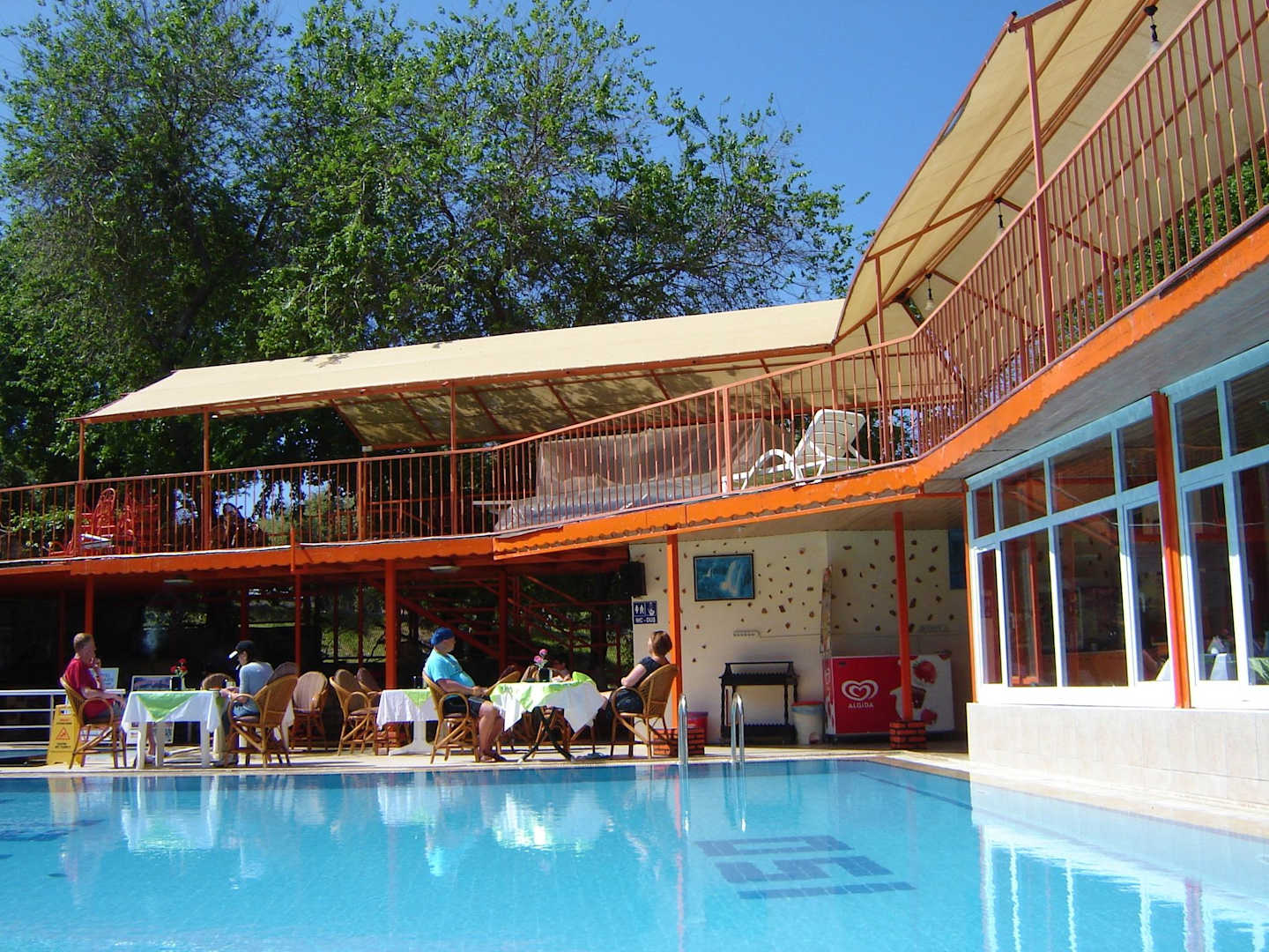 Swimming pool and restaurant on the right