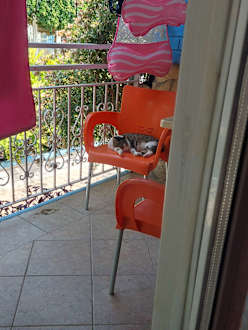 Hier wird noch geschlafen. 😅 P.S. Die Terrasse wurde gereinigt. Bezieht sich auf den Fleck am Boden.
