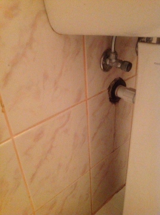 Waschbecken an dem Wasser tropftwie auch ihr sieht läuft an dem Rohr raus. Wirklich eckelhaft, das ganze Wasser vom Waschbecken läuft runter.